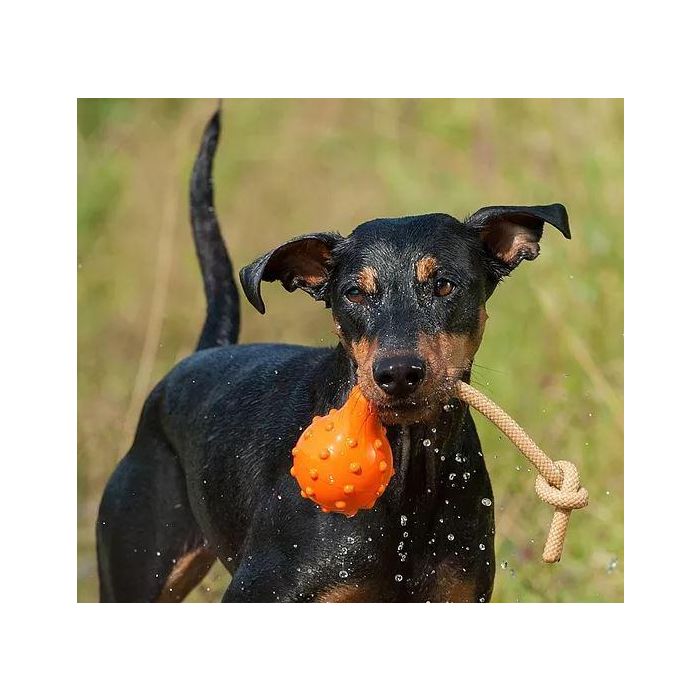 It was developed especially for fun, filled retrieval toys and fetch training in the water. This Swimming Eddy dummy is easy to find in water for swimming dogs thanks to its shape. The attached cord enables you to throw it far.